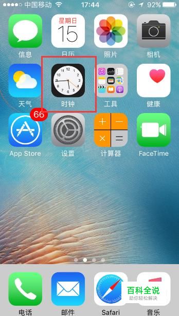 用户想要设置苹果手机的就寝提醒功能,首先点击手机中的“时钟”按键。