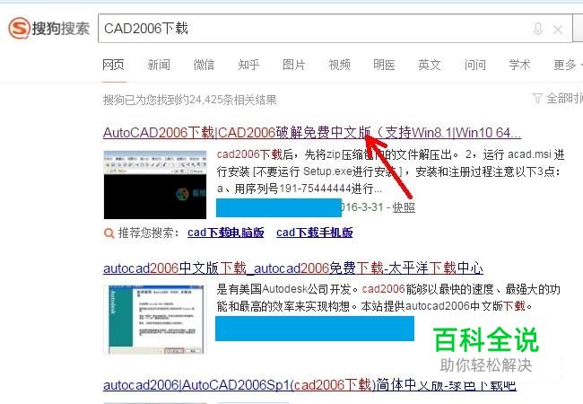 在搜狗浏览器中搜索“CAD2006下载”,进入网站下载CAD2006安装包。