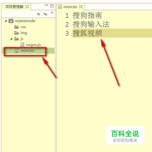 然后在文本文件写上一些内容,待会我们就可以使用node.js来读取这个文本文件里面的内容。
