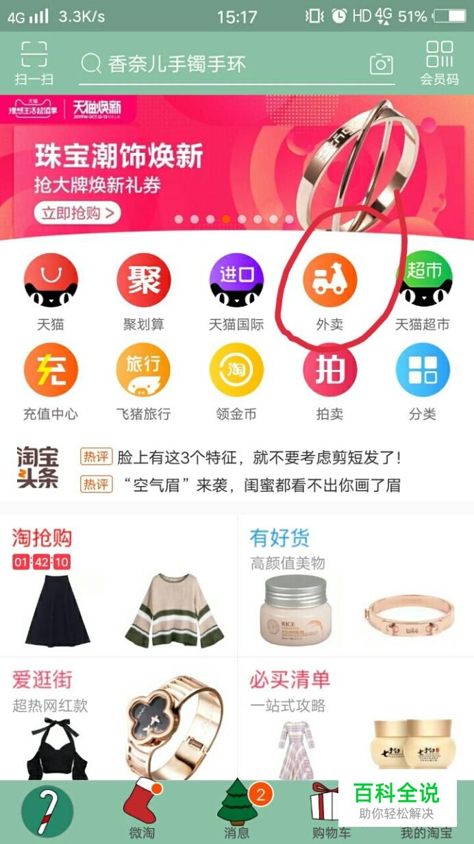 现在人们的生活节奏越来越快,很多人没有那么多时间出外面去吃午餐,也可能因为懒,不想走动,所以现在点外卖成了很多人的选择,既方便,又能够吃上自己想吃的菜,可以说是忙碌工作者的福音。今天小编就来跟大家介绍一下怎样用淘宝来点外卖,希望对大家有所帮助。
