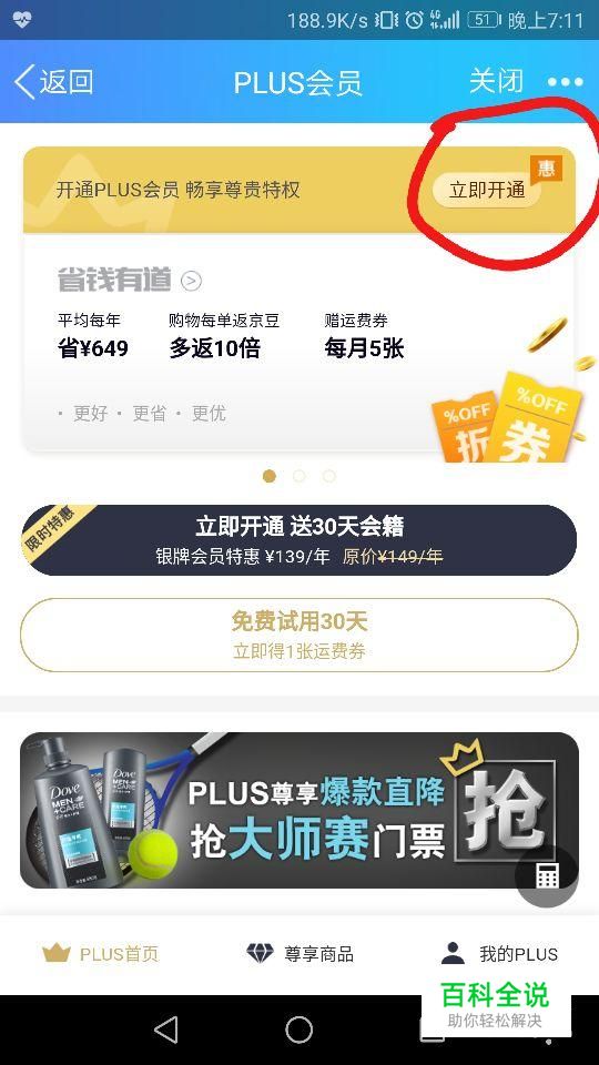 打开PLUS会员界面后点击上方的立即开通,如图所示。