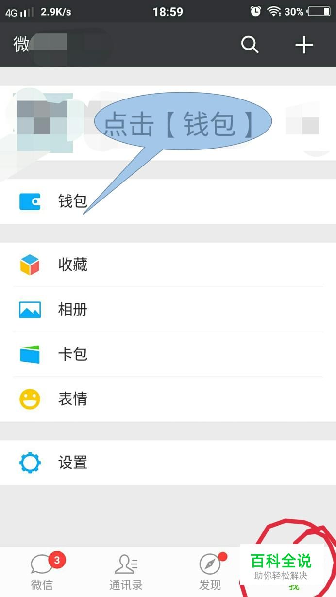 首先打开微信点击【我】的图案找到【钱包】并点击,如下图所示