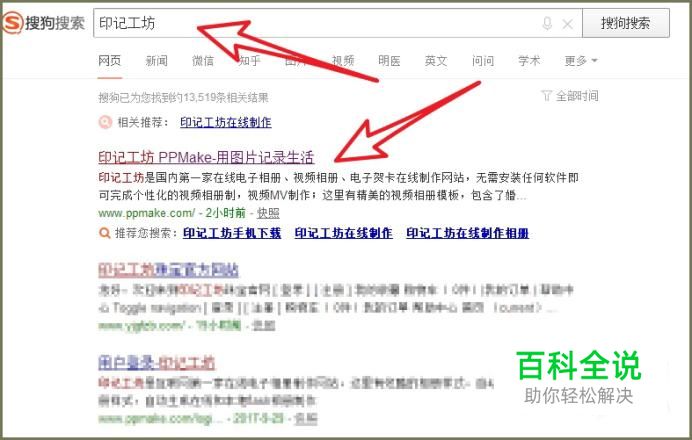 打开浏览器,用搜狗搜索,来搜索印记工坊,然后打开印记工坊的官网!