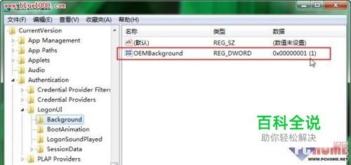 如果你不想借助工具,也可以手动更换,只是这样就不能定时自动更换了,假如你不在乎,那就接着往下看吧。 首先你要确认一下是否开启了登录背景更换功能,启动注册表编辑器,定位到:HKEY_LOCAL_MacHINE\Software\Microsoft\Windows\CurrentVersion\Authentication\LogonUI\Background,看一下是否存在一个名为:OEMBackground 的Dword值,并且其数据为1。若没有就新建一个并赋予数据。 检查是否允许自定义登录背景