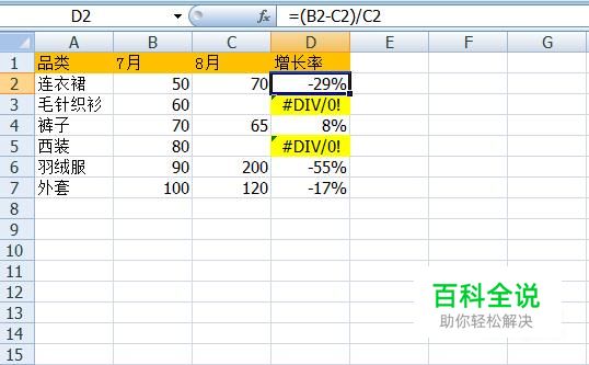 如果错误值显示0或者其他文字说明的时候,也可以修改为:=iferror((B2-C2)/C2,"0")或者=iferror((B2-C2)/C2,"有问题")