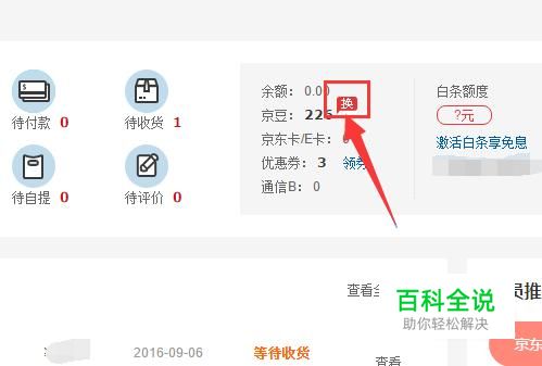 登录京东账号后,我们找到个人中心主页,然后点击下图箭头所指的红色字体换【换】,进入兑换页面。