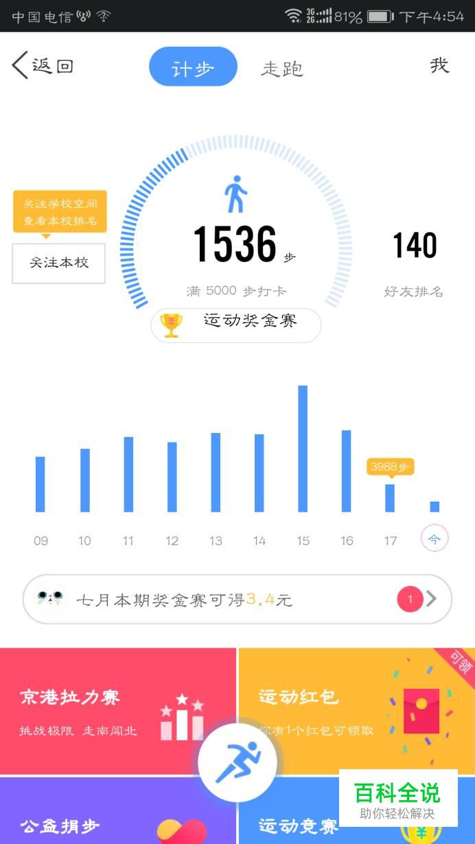 点击以后就会出现如下界面,在此界面中你可以看到现有的运动步数,看到上方的运动数据了吗?点击它!