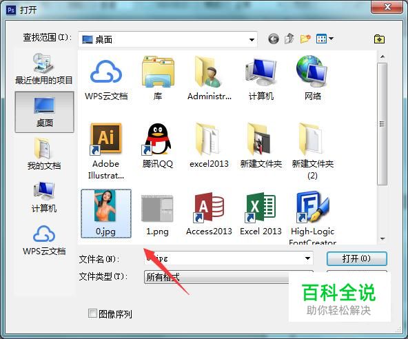 打开ps之后按下Ctrl+O键在弹出的对话框内找到我们的图片素材,如图所示: