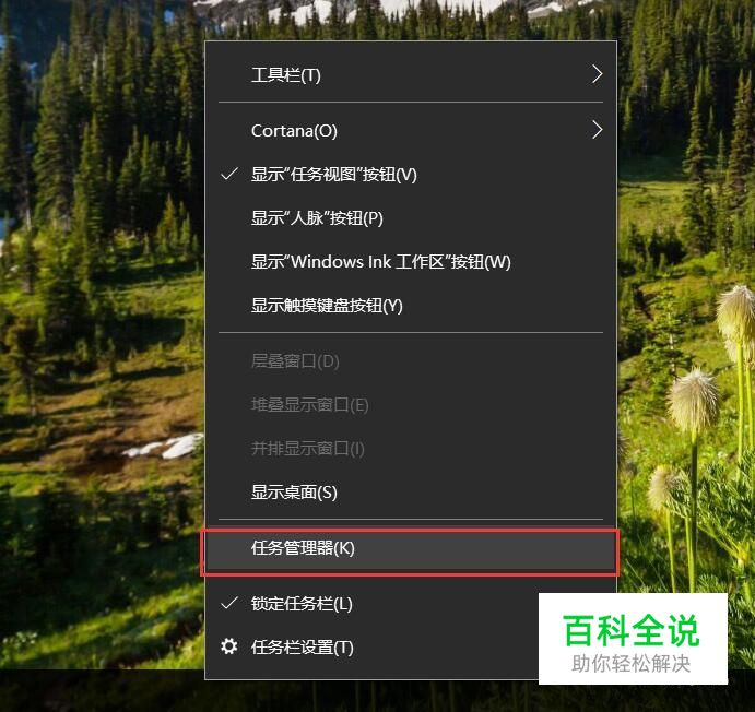 为了阻止软件再次生成WPS云文档图标,我们可以考虑将其程序文件删除,在任务栏中击右键,选择“任务管理器”菜单选项。