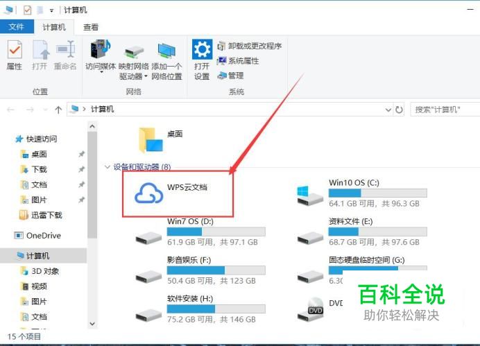Win10资源管理器中的WPS云文档图标怎么彻底删除