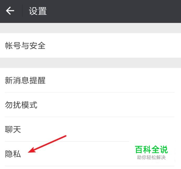 打开了设置页面,点击‘隐私’选项