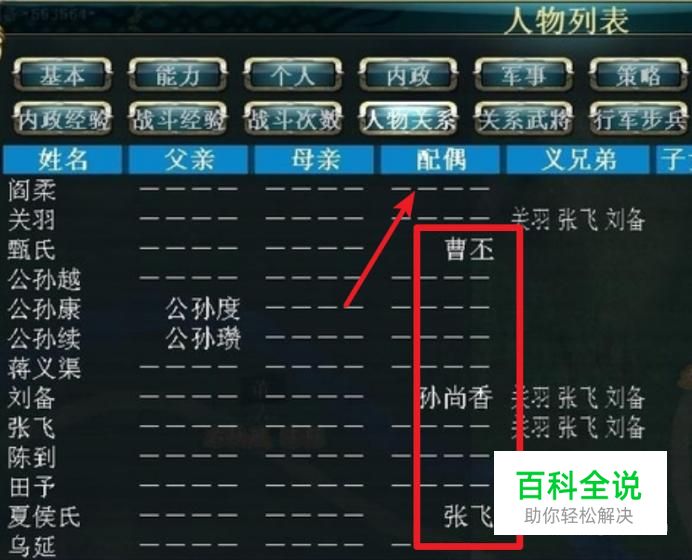 首先我们需要明确一下,要生出后代,一定要是有配偶的武将才有机会生出后代的,在游戏中的人物列表里,可以看出哪个武将当前有配偶。