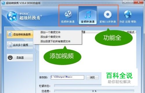 使用合并音频、混音器等功能 超级转换秀还支持将多个不同的音/视频文件合并为一个MP3格式或其他格式的文件,以满足各位网友的全方位需要!更激动人心的“混音器”功能,还支持多格式导入混音并保存为音频文件,真不愧是国内最资深的转换软件!最后,点击“开始转换”,即可将音频快速转换出来!
