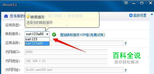 如果是【(光纤)路由猫--(无线)路由器--电脑】的环境,需要进入(无线)路由器的的操作页面。在添加映射中【内网地址】:进入(无线)路由器的操作页面,查看网络的wan接口其中的ipv4地址填入即可。