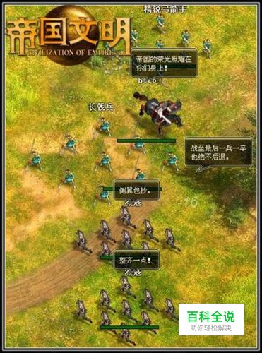 完美战斗模式 享受指挥快感 在《帝国文明》游戏中,玩家可以在战略层面和战斗中对自己的军队进行即时操控,玩家可以对自己的军队下达侦察、攻城、掠夺或骚扰的命令。无论哪种形式,都可以由玩家来自由把握,充分享受指挥的快感。玩家进入战斗地图后,同时也可以进行即时操控!这是目前市面上的网页游戏都没有的设定!因此,玩家可以控制整个军队的行动,如前进、突击、撤退等,更可以单击某个队伍,进行更细致的操作!如:移动到某个地点,攻击某个玩家指定的对方单位等,让玩家过足统百万大兵以压敌境的大将之感。