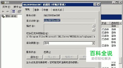 同时将"SQLSERVERAGENT"服务设置为自动启动