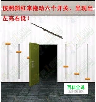 看到第14关的界面,就要注意到大门上的墙壁有裂痕,门的左右边还有6个可以拖动的开关(如上图所示)!