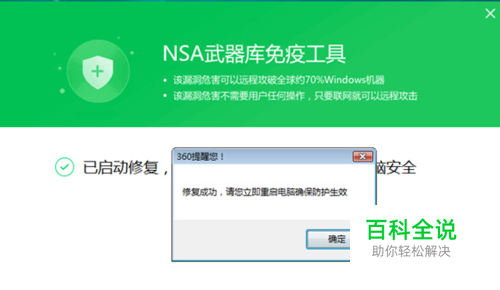 下载360安全卫士离线救灾版(http://down.360safe.com/setup_jiuzai.exe),会自动运行“NSA武器库免疫工具”,防止病毒再次入侵: