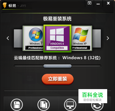 顾名思义,极易一键重装系统专家是一款极速、容易的在线安装系统软件,对于不会重装系统的人来说,这就是一个傻瓜 式操作的方式,你不需要找朋友帮你重装系统,你也不需要拿到电脑店付费去重装电脑系统,你也不需要明白软件的装机 流程,只需3个步骤:下载-打开-选择系统,点击重装按钮即可等待换上全新的系统。极易一键重装系统专家具有自动识别 电脑硬件进行云匹配最佳系统。不管安装XP、Win7、Win8系统,都能实现在线重装,轻松解决电脑系统重装问题。