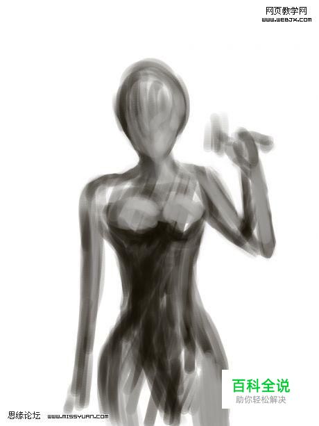 大致勾出人物的五官和身体轮廓,一样也不需要细节,这一步只要把人物整体的感觉表现出来。