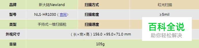 新大陆HR1030红光一维扫描枪 新大陆HR1030红光一维扫描枪的基本参数 新大陆HR1030红光一维扫描枪来自各权威机构的认证 新大陆HR1030红光一维扫描枪的概述: 这款新大陆nls hr1030手持扫描枪扫描速度非常快,主要用于一维码的扫描,可满足绝大多数条码扫描的需要。可广泛应用于零售业,办公自动化等领域。高达300次/秒的扫描速度和超过30厘米的识读距离,使它成为手持条码扫描应用的不二选择。 新大陆nls hr1030采用自主的核心技术uIMG 。完全由本公司独立设计制造。uIMG包含光学系统、光电耦合系统、图形数字化、编解码、图形处理、嵌入式系统等一系列综合性技术。可识读常见国际标准一维条码,识读性能达到国际先进水平。可通过本公司所提供的应用配套,识读用户自定义的各种条码。 新大陆HR1030红光一维扫描枪的特征及优点: (1)支持各种一维条码的扫描。 新大陆HR1030扫描枪基本上可以扫描市场上常见的一维条码,误码率非常低! (2)可设置自感应扫描模式和不重复扫描模式。 新大陆HR1030扫描次数可达每秒300次,远超激光枪的100次/秒!!红光的覆盖面更多,所以比激光更全面读取条码的信息,对破损条码更容易读取。 (3)可直接扫屏幕上的条码,而普通激光枪不行。 新大陆HR1030可以直接将扫描枪对着电脑屏幕扫条码,一般激光枪扫不了,只能将条码打印出来,再扫描。 (4)采用自主的核心技术uIMG ,能快速读取模糊、残缺码,如下图。 新大陆HR1030红光一维扫描枪的应用范围: 新大陆HR1030红光一维扫描枪的规格参数: 识读性能 识读模式:线性CCD 接口:USB-HID, True RS232, TTL level RS232, Keyboard Wedge 识读精度:≥5mil 提供光源:Visible LED Diode 620nm 识读景深:25mm-390mm 打印对比度:≥30% 条码灵敏度**:倾斜±55°@ 0°Roll and 0° Skew 旋转:±25°@ 0°Pitch and 0° Skew 偏转:±75°@ 0°Roll and 0° Pitch 环境光照度:0 ~ 100,000 LUX 机械/电气化性能: 功耗:0.75W(最大) 工作电压:DC 5.0V 电流最大电流:150mA 工作电流:120mA 待机电流:45mA 颜色:黑或白 外观尺寸(长×宽×高):156.0×95.0×71.0 mm 重量:105g 工作环境 工作温度:-0℃to + 50℃ 储存温度:-40℃to + 60℃ 工作湿度:0 to 95% ( 无凝结)