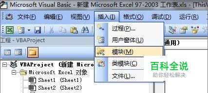 在宏编辑器界面:插入〉模块