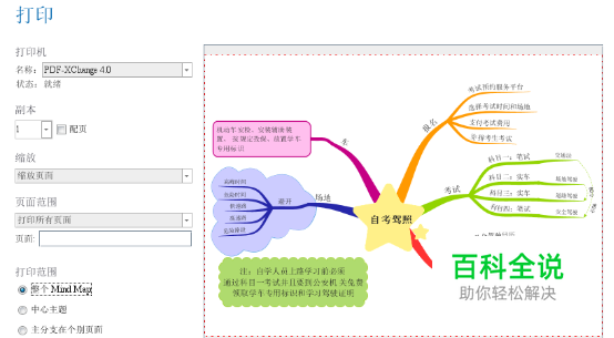 打印何尝不是一种保存、导出iMindMap思维导图的一种方法,我们还可以通过调整打印设置来满足我们不同的需求。下面小编就给你翻一翻iMindMap中文版教程,教你怎样调整打印设置。 我们在打开iMindMap中文版后,或绘制或打开已有导图。 打印之时点击【文件】中的“打印”选项。 我们在iMindMap打印窗口中,可以对打印常规设置进行更改。 打印机:选择与电脑相连接的打印机设备。 副本:选择打印的份数。 缩放:可根据选项将导图进行缩放调整,其中1×2表示分为横向一半,2×1表示竖状一半。3×3表示分为9等分的缩放,以此类推。 页面范围:选择打印的页面数,所有还是当前还是自定义。 打印范围:选择打印导图的范围,是整幅导图还是仅中心主题,或将分支拆分进行打印,亦可自行调整区域。 最下方则是选择打印导图还是甘特图还是图标表格。