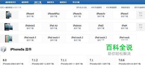 我们可以在固件下载网站下载终端所对应的固件。iOS8的储存空间要求比较大,比如在iPhone 5S 上,安装文件的大小为 1.1GB,安装要求至少有 5.8GB 的存储空间,我们可以删除一些文件来腾出安装的空间。(苹果园官网截图,自截)