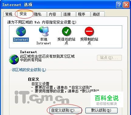 进渗透“安全”页面,点击“自定义级别”