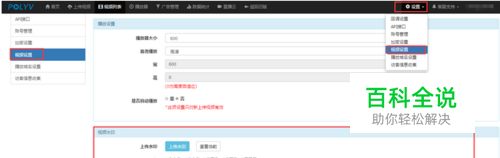 第二种方式是在顶部功能列表右侧的“设置”下拉菜单中,点击“视频设置”,可进入“视频设置”操作界面,找到“视频水印”即可,如下图所示。