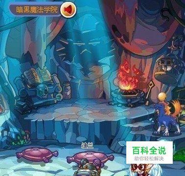 按照往日糖糖教大家的方法,点击图中的“GO”按钮,系统就将我们传送到了暗黑魔法学院、迪兰老爷爷的身旁,场景中的迪兰戴上这顶机械帽子真的是很奇怪,这帽子真的一点也不适合他,我们帮迪兰把这顶奇怪的帽子给摘了去吧。