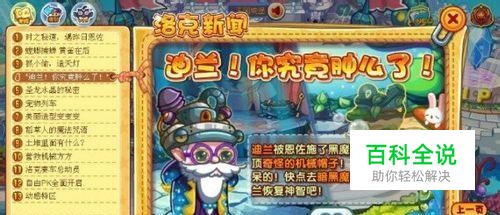 打开时报新闻,选择第三栏,我们会看到迪兰老爷爷被带上了一顶机械帽子,这帽子好奇怪好奇怪,让迪兰老爷爷看起来呆呆的,原来这顶机械帽子是被恩佐施了黑魔法的。洛克们一定很担心迪兰老爷爷会出什么事吧,那我们快去暗黑魔法学院,让迪兰恢复神智!
