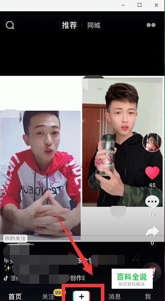打开抖音,在屏幕下方中间有一个加号,我们点击它,如图。