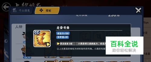 黑龙套装之一,龙骨号角,能够增加攻击力130点和生命值40点。小黑专用套装。