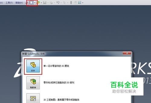 首先打开solidworks软件,新建一个零件模型