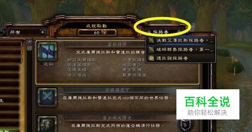 在成就界面的右上角,图中的标记处输入"探路者"找到相应的成就 查看所需要条件.