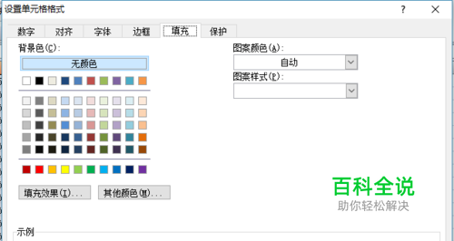 进入单元格设置后找到填充,这里可以看到各种颜色,你可以直接选择单一的颜色,点击下面的色域