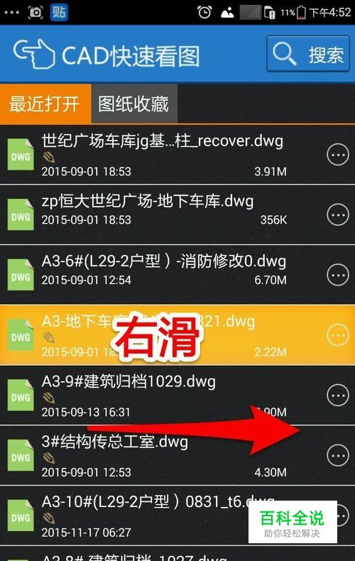 打开软件, 右滑 确保手机里有电子版图纸,即电脑使用的, dwg文件。