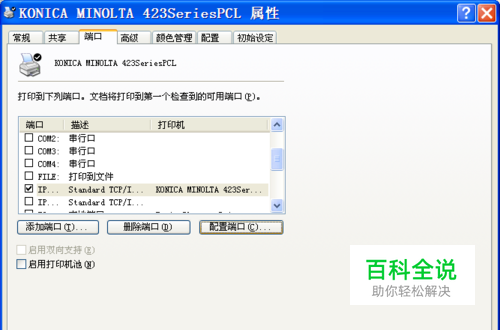 查找打印机IP地址。打开 网上邻居>打印机和传真>选中打印机并右击>属性>选择端口,出现以下对话框后点击配置端口。在跳出的对话框第二行可见到IP地址。