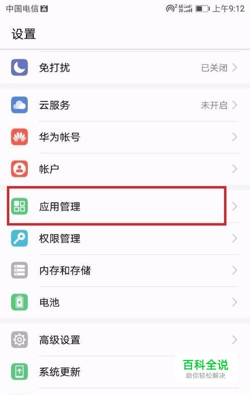 先打开华为手机桌面上的“设置”,然后再点击应用管理,打开应用管理界面。