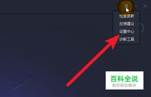 然后点击右上方的设置,在下拉菜单中选择设置中心。