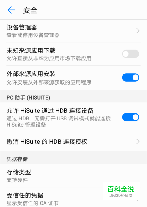 在“允许HiSuite通过HDB连接设备”这里一定要打勾。