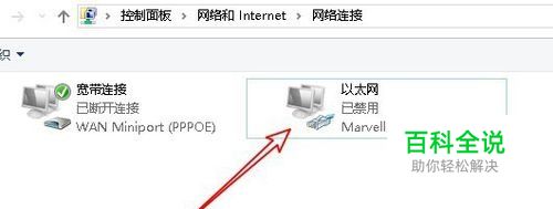 在Windows10系统,打开网络连接窗口,可以看到“以太网”已禁用的提示。