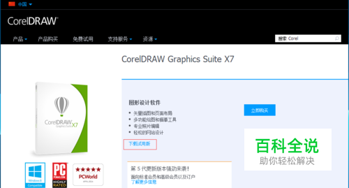 从cdr官网下载适合自己系统的cdr安装程序 网址:http://www.coreldraw.com/cn/product/graphic-design-software/