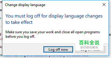 最后记得点击最下面的保存”Save“按钮,系统会提示需要注销,选择”Log off now“,重新登录Windows后就还原成中文版了。