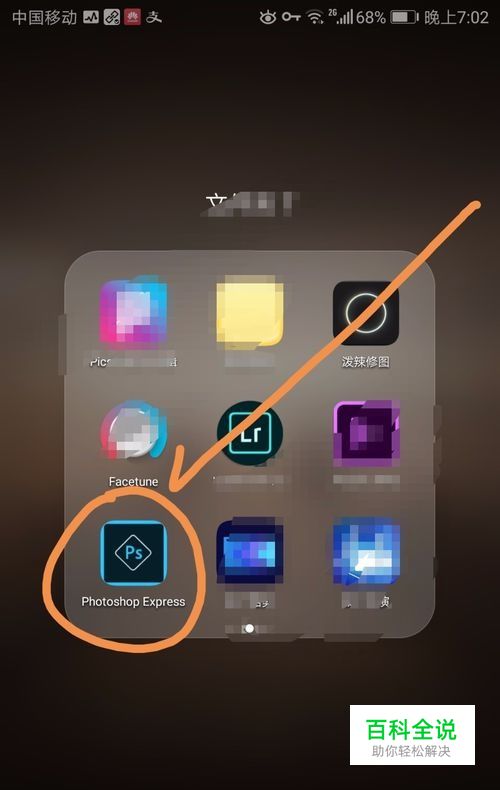首选需要点按手机中的Photoshop Express应用标志。
