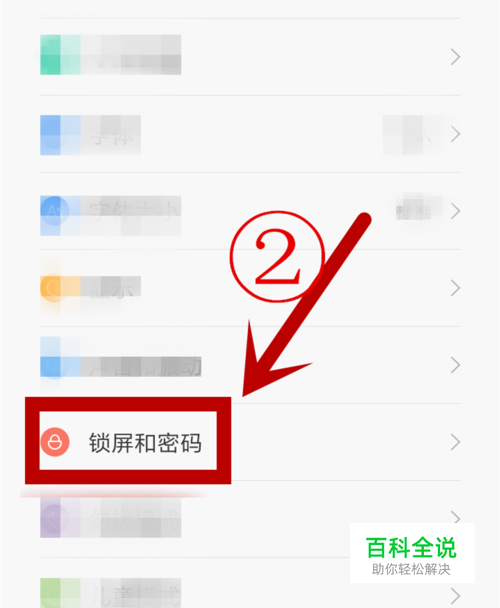 点击“设置”后进去,往下划,找到“锁屏和密码”这个选项。这个选项一般在中间位置,找不到的话看图中所指: