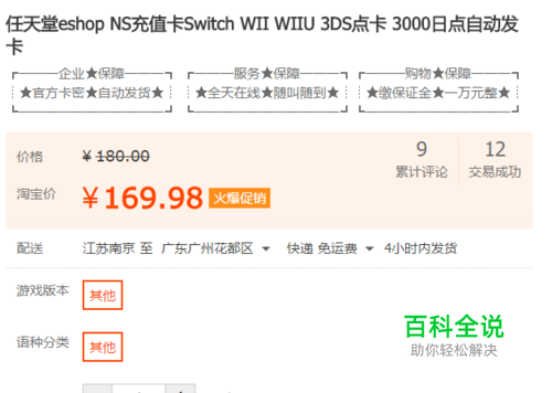 登陆淘宝,搜索商品“eshop点卡“,下单购买,如下图:
