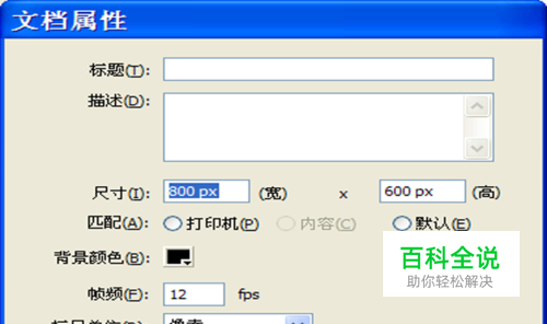 启动flash8,执行文件-新建命令,新建一个大小为800*600,帧频为12fps,背景颜色为黑色的文档。