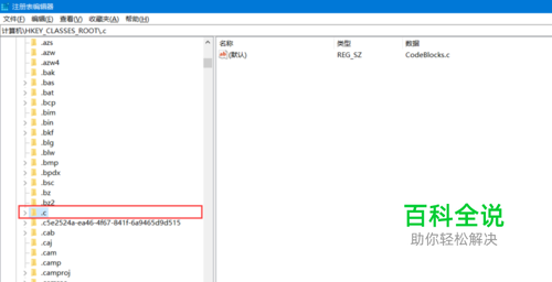 展开该文件夹,查看子项,找到名字为.c的注册表,然后右键->导出